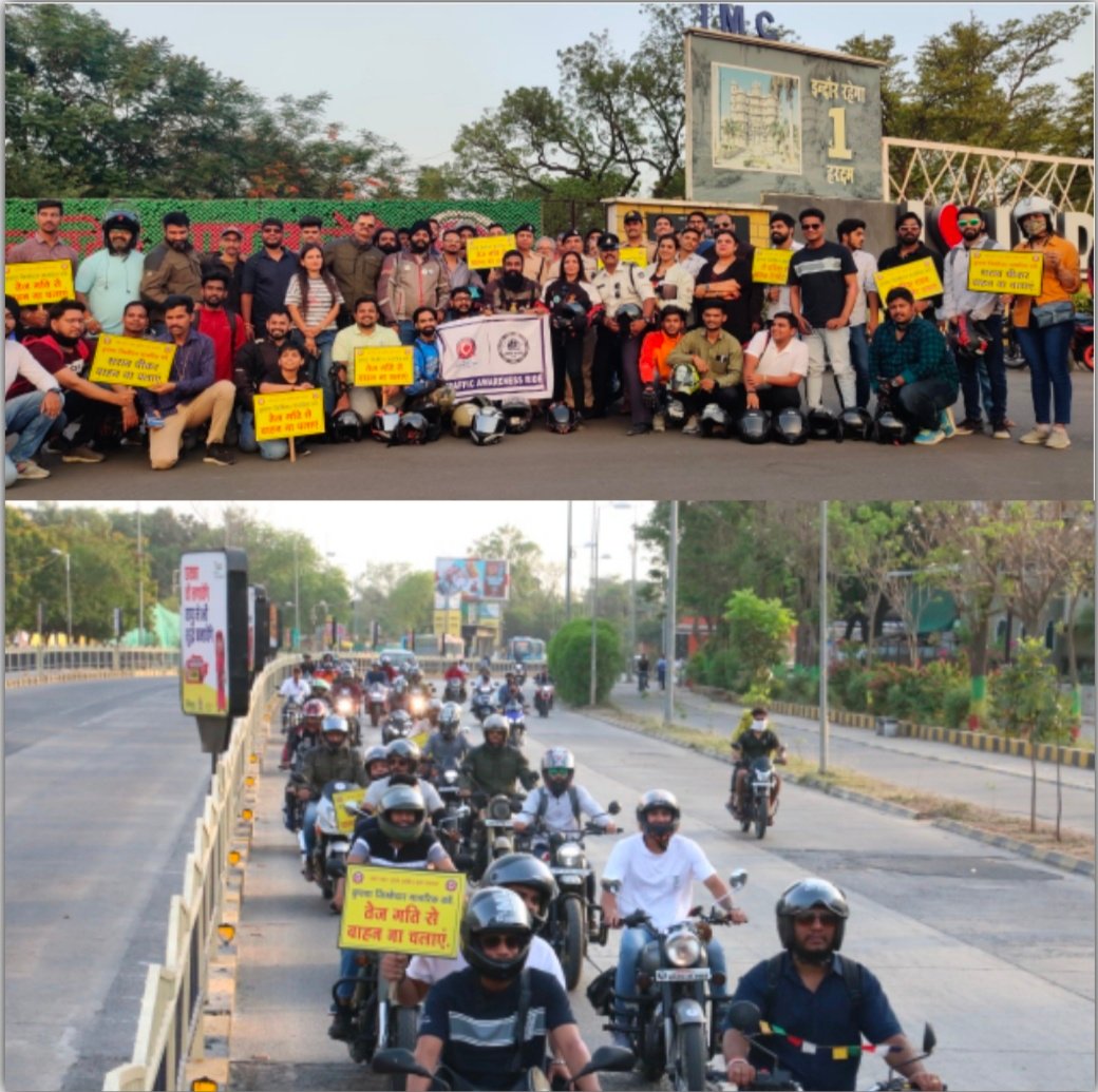 इस कड़ी में रविवार को यातायात प्रबंधन पुलिस और इंदौर राइडर्स क्लब के राइडर्स ने सड़क सुरक्षा संदेशों को आमजनमानस तक पहुँचाने के लिए जागरूकता रैली का आयोजन किया रविवार शाम 6 बजे राजीव गांधी चौराहे से शुरू हुई जागरूकता रैली में 100 से अधिक राइडर्स शामिल हुए उक्त जागरुकता रैली पुलिस उपायुक्त यातायात प्रबंधन महेश चंद्र जैन के मार्गदर्शन में निकाली गई। रैली को राजीव गांधी चौराहे से अतिरिक्त पुलिस उपायुक्त अंजना तिवारी ने फ्लेग ऑफ कर रवाना किया